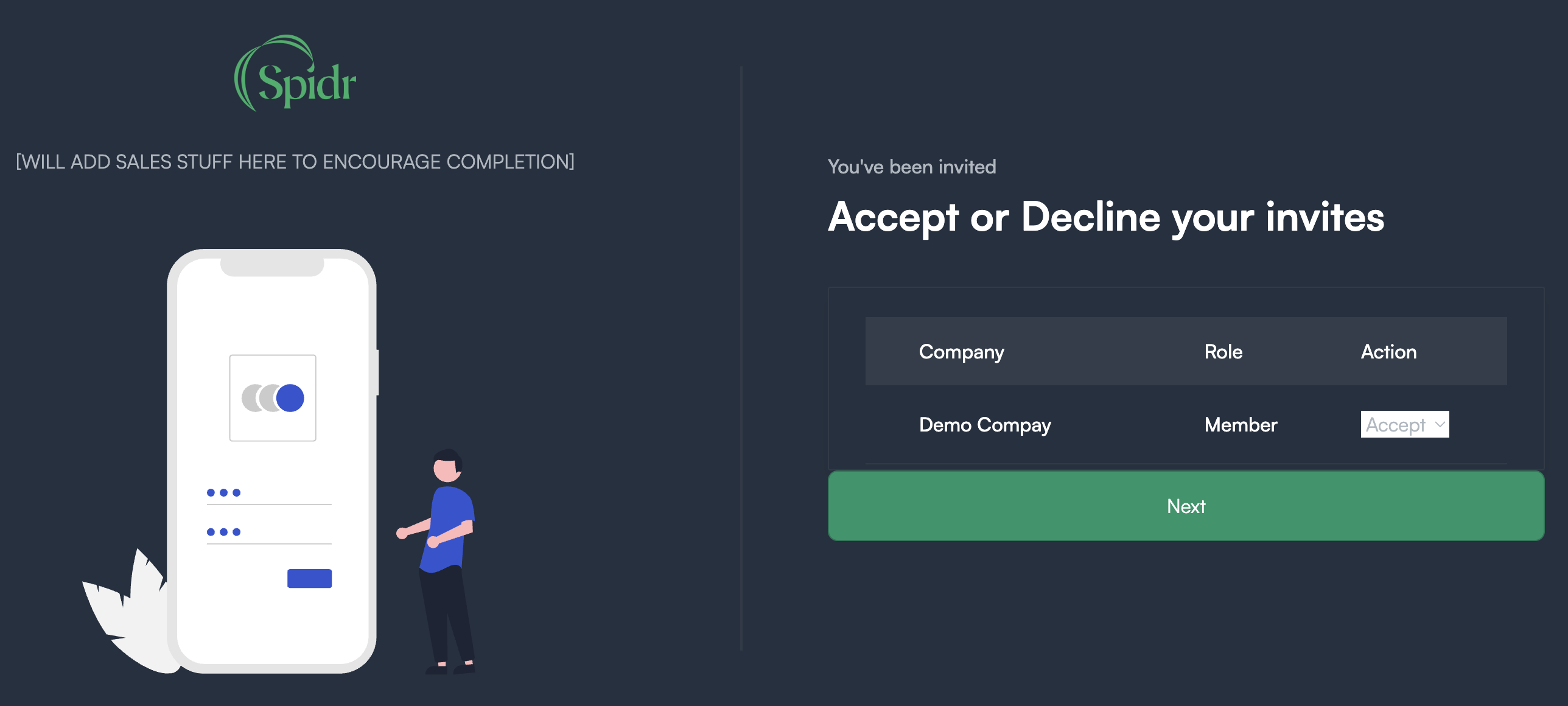 - You'll be prompted to accept or decline the invite. Accept and hit 'Next'